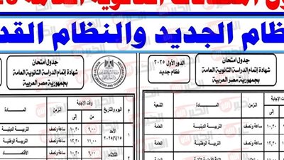 جدول امتحانات الثانوية العامة 2025 لجميع الشعب بالنظامين الجديد والقديم